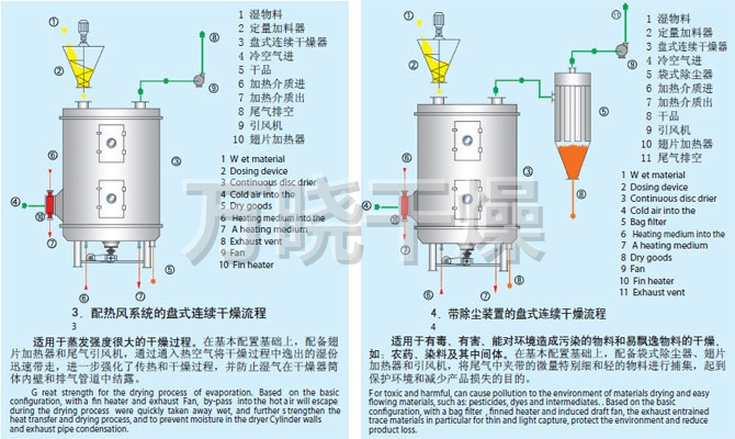 ◎真空型:在真空状态下操作的盘式干燥器,特别适用于热敏性物料的干燥。