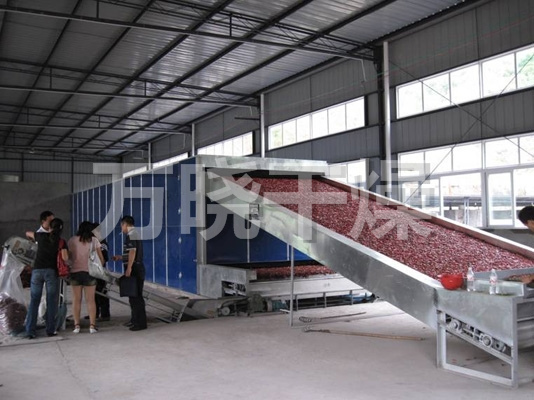 能满足根、茎、叶类条状、块状、片状、大颗粒状等蔬菜物料的干燥和大批量连续生产,同时能大限度的保留产品的营养成份及颜色等。
